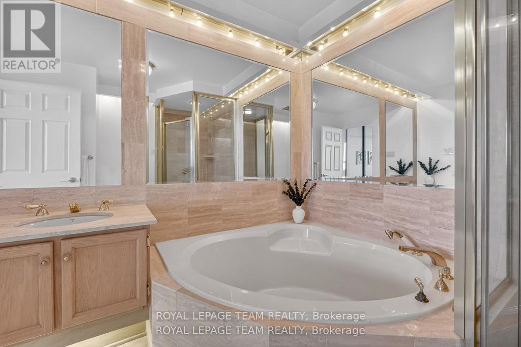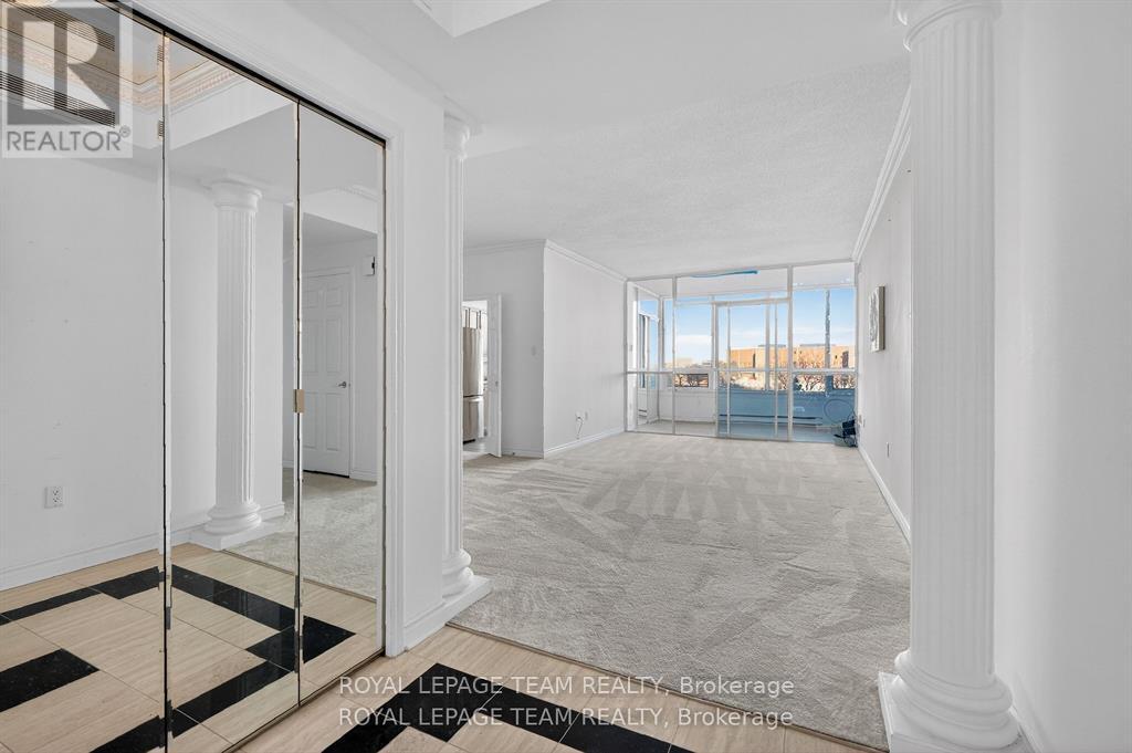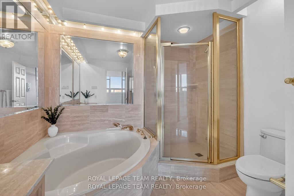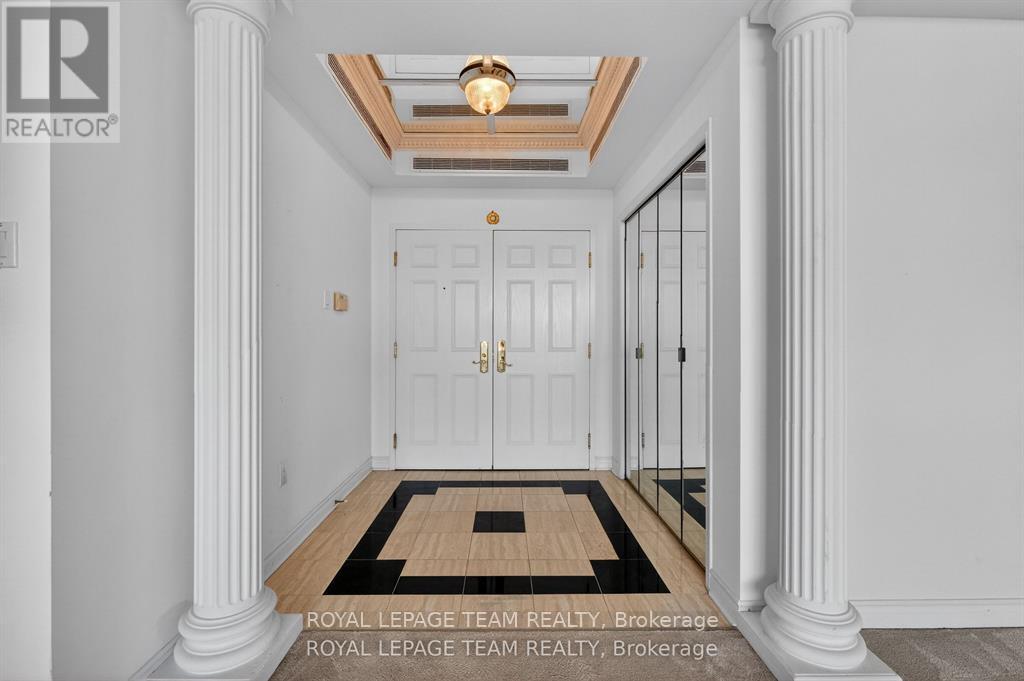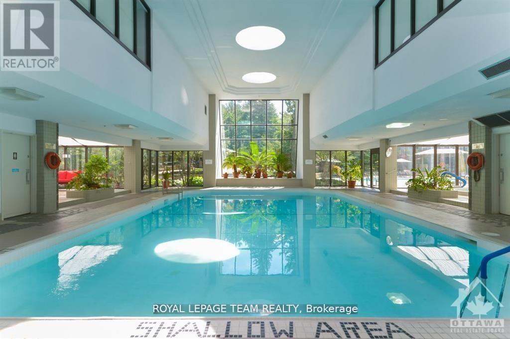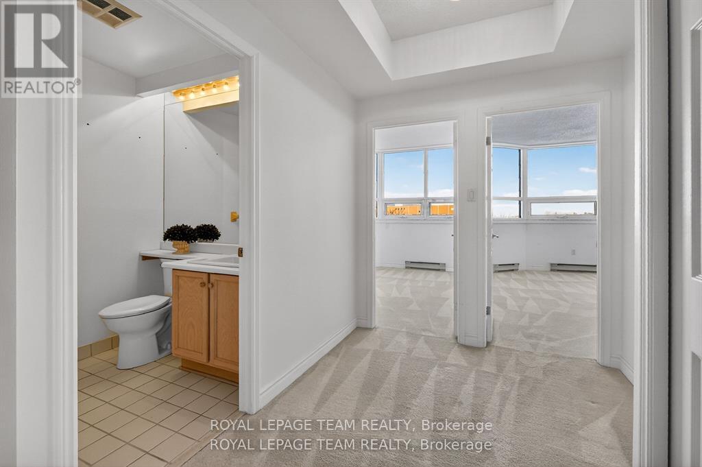 Welcome to this bright and well-maintained 2-bedroom, 2-bathroom condo offering comfortable and convenient living. The thoughtfully designed layout provides excellent separation between bedrooms, ideal for privacy or guests. Wall-to-wall carpeting throughout has been freshly cleaned, creating a warm and inviting atmosphere. The spacious primary bedroom features a full ensuite bathroom, while the second bedroom is perfectly suited for a home office, guest room, or additional living space. Enjoy low-maintenance condo living with generous living and dining areas, perfect for relaxing or entertaining. The Riviera is Ottawa's most coveted Country Club Condo offering 24/7 concierge security. The exquisite Riviera complex features indoor/outdoor pools, 4 tennis, 2 exercise rooms, squash & badminton courts, yoga, stretch & aqua fitness classes, games room, renovated Nordic-like spa & elegant reception rooms. Steps to LRT, Train Yards shopping & Transit. Prestigious living so close to the city! (id:2469)